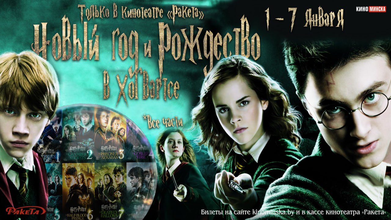 С 1 по 7 января 2026 года кинотеатр «Ракета» приглашает на большой праздничный показ всех частей легендарной саги о Гарри Поттере. Отличный повод провести новогодние каникулы в мире магии на большом экране!