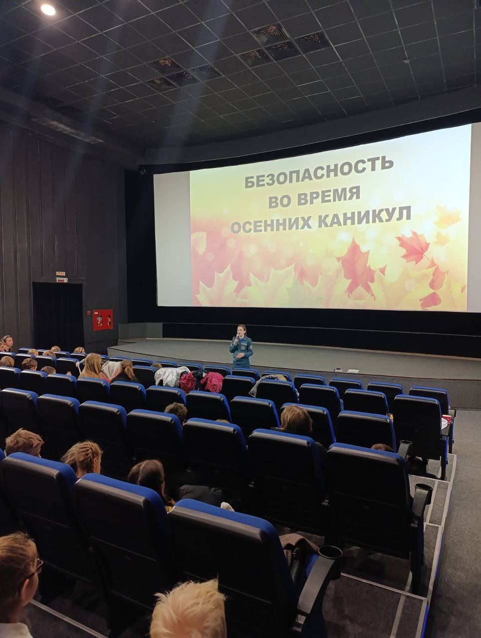 5 ноября в кинотеатре «Мир» для школьников прошло тематическое киномероприятие «Безопасность во время осенних каникул».