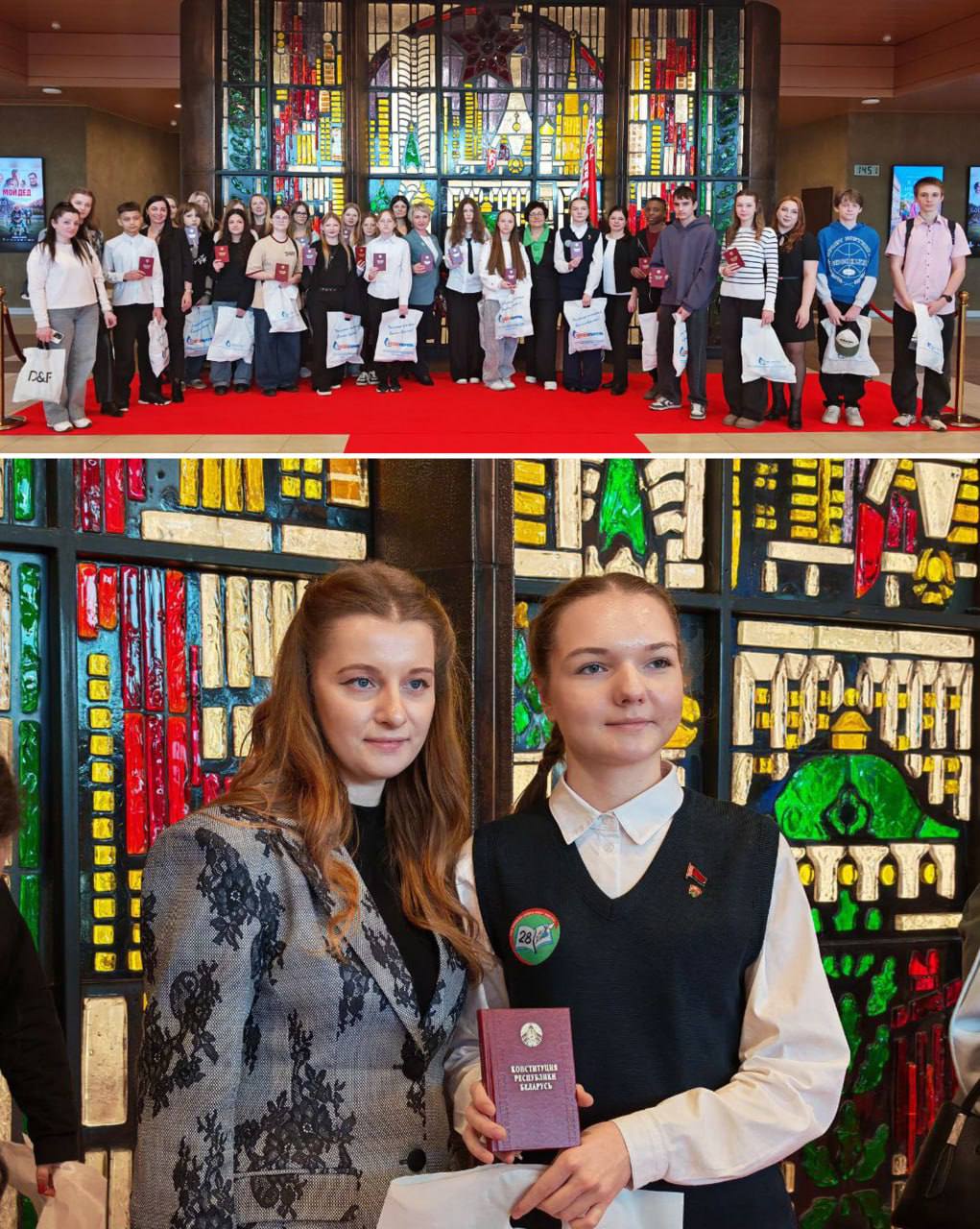В торжественной обстановке ребята получили из рук почетных гостей главный документ страны — Конституцию Республики Беларусь — и памятные подарки.