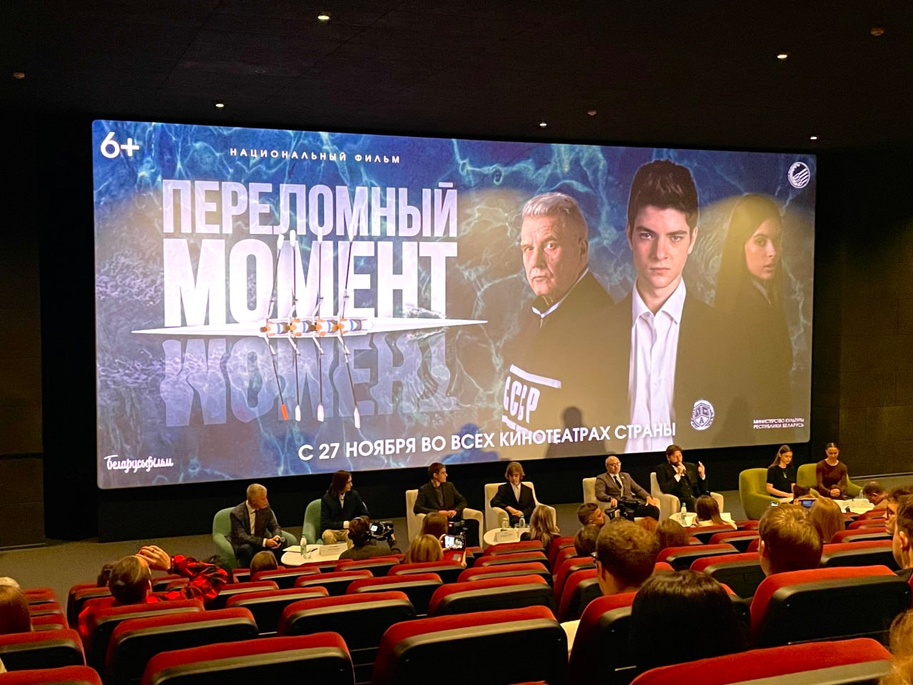 24 ноября в кинотеатре «Москва» прошла пресс-конференция и показ фильма «Переломный момент». Гости пообщались с создателями фильма, задали свои вопросы и первыми посмотрели картину на большом экране. Атмосфера получилась живая и тёплая — именно так, как хочется для таких премьер.