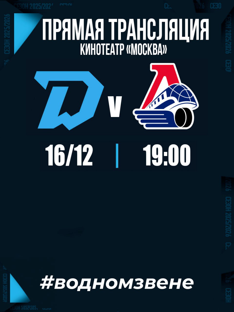 16 декабря в 19:00 приглашаем всех болельщиков на прямую трансляцию хоккейного матча «ЛОКОМОТИВ» против «ДИНАМО-МИНСК» в кинотеатре «Москва».