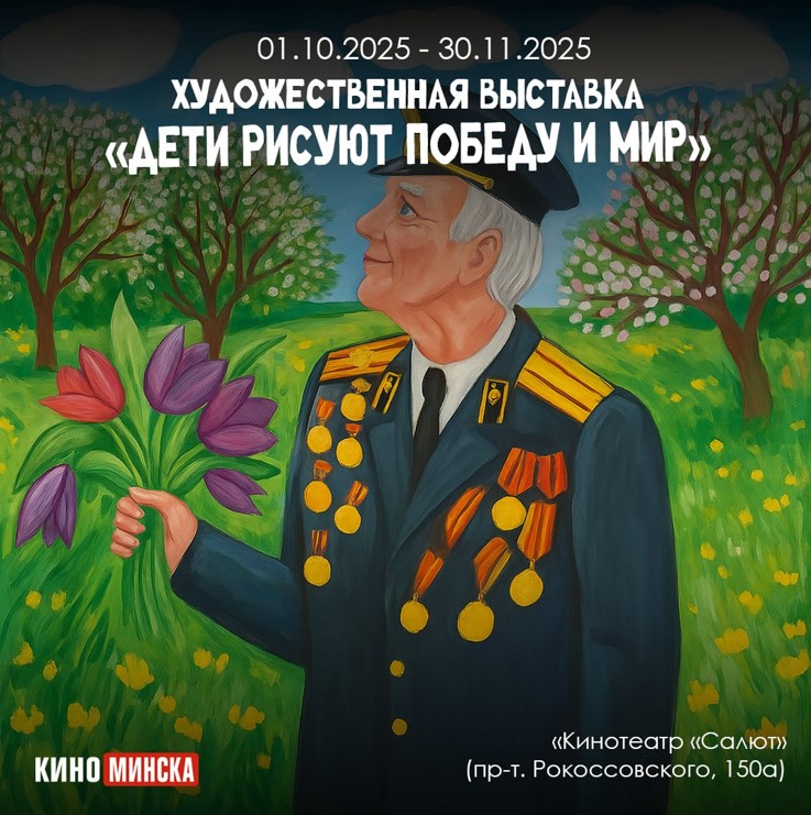 С 1 октября по 30 ноября 2025 года в кинотеатре «Салют» будет проходить выставка «Дети рисуют Победу и Мир».