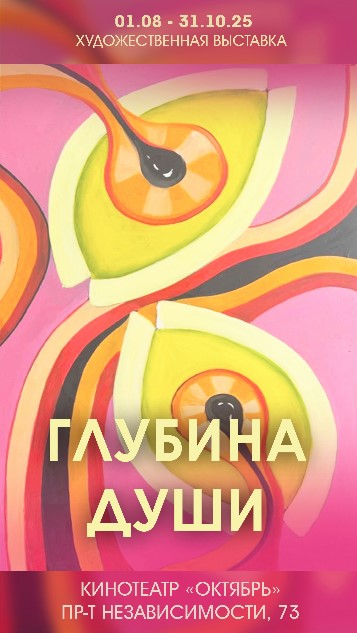 Кинотеатр «Октябрь» (пр. Независимости, 73) с радостью приглашает вас на уникальную авторскую выставку Вариной Виктории Викторовны «Глубина души», которая будет радовать глаз с 1 августа по 31 октября 2025 года.