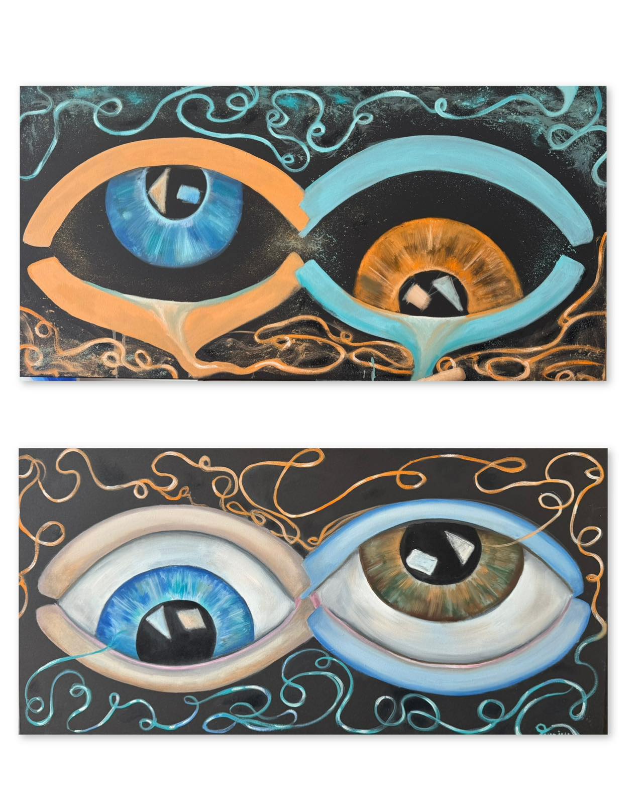 В экспозиции представлены шесть потрясающих работ — пять диптихов и один триптих, выполненных на холсте и бумаге с использованием масла и акрила. Каждое произведение — это искреннее отражение внутреннего мира художницы, её чувств, переживаний и мечтаний, которые словно оживают на полотне.