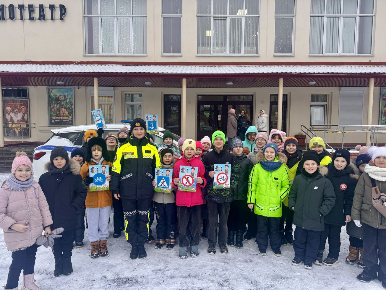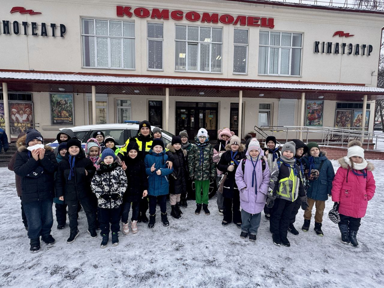 В завершение для ребят был организован просмотр обучающего мультфильма по ПДД в кинотеатре «Комсомолец». Каждый юный участник акции получил сладкий подарок.